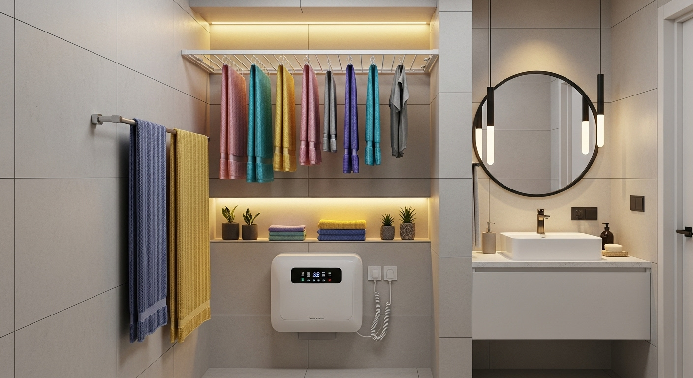 また、浴室乾燥と夜間干しを組み合わせる方法も人気があります。夜のうちに洗って浴室に干しておけば朝には乾いているので、共働き世帯にも便利です。室内干しスペースを「見せる収納」としてレイアウトすれば、デザイン性の高いバーで生活感を抑えることもできますよ。